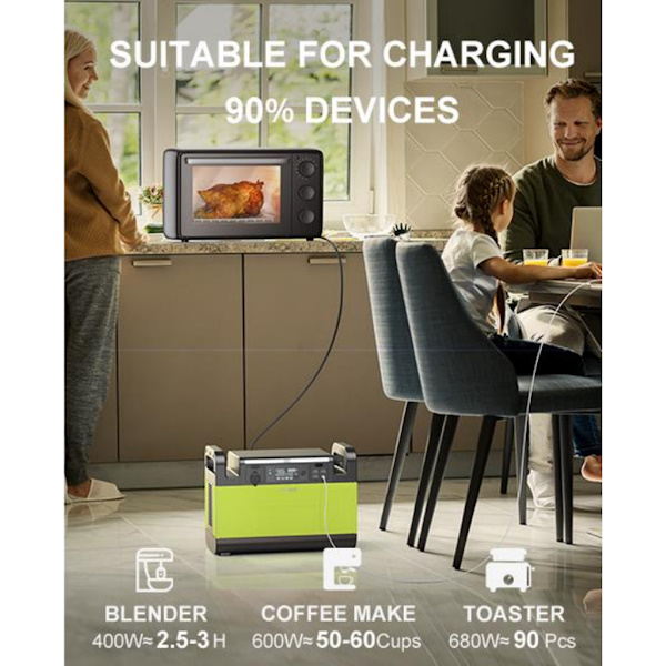 Reliable Power Anywhere: The GT1500 portable power station is your go-to solution for dependable power, no matter where you are. With a robust 1500W capacity, it can effortlessly run essential appliances like TVs, refrigerators, and power tools, ensuring you stay connected and powered up during any adventure or emergency.